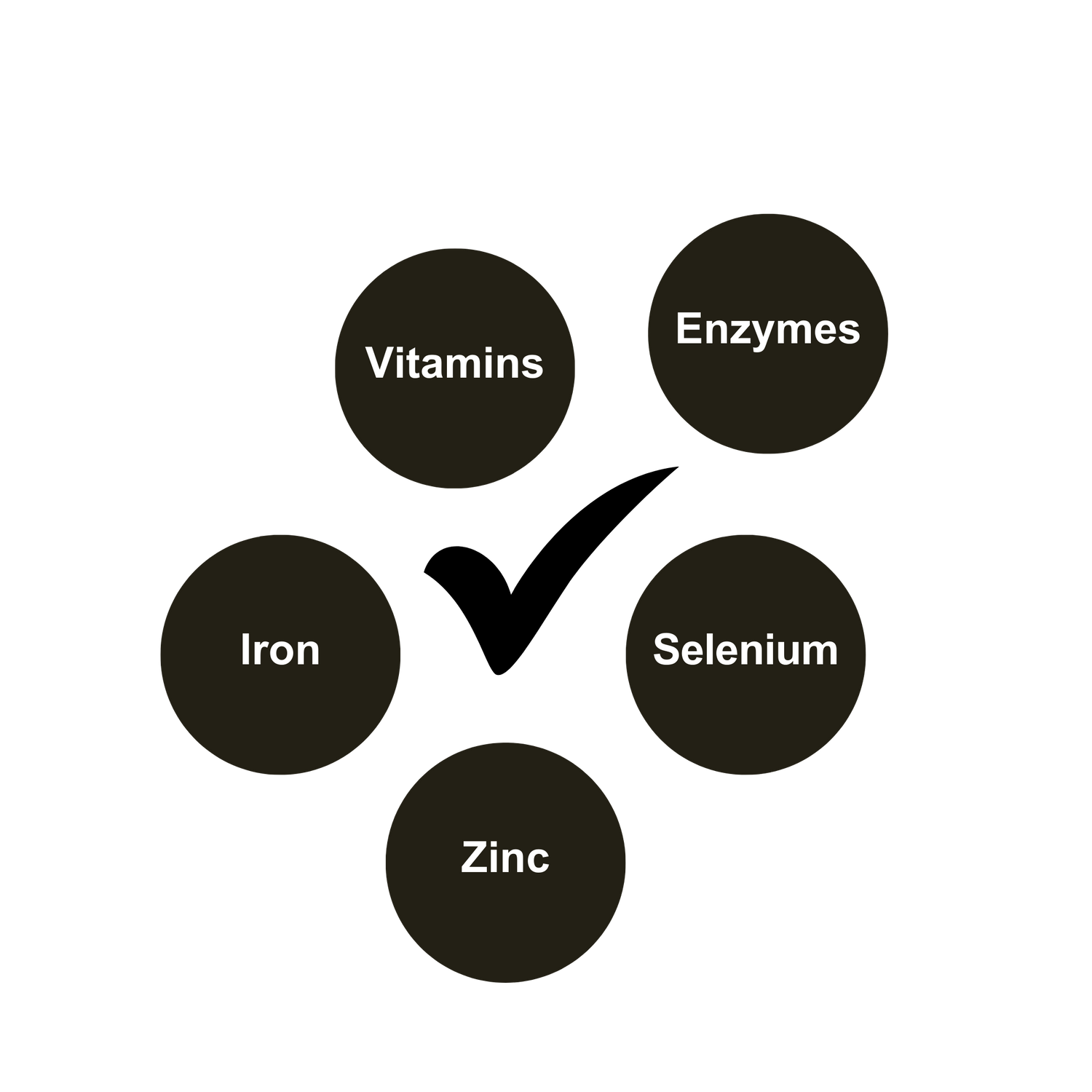 Vår produkt är även kompletterad med gräsbetad nötlever, som innehåller höga nivåer av vitamin A (biotillgänligt retinol) och vitamin B12 samt hemjärn (biotillgänglig järn).